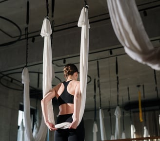 Air yoga is an interdisciplinary workout that combines the flexibility and technique of regular yoga with the strength building of hanging. Whether you’ve tried air yoga before or are a total beginner, you’re welcome in our classes.